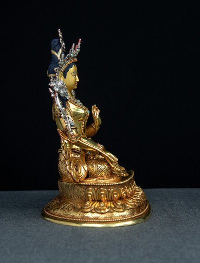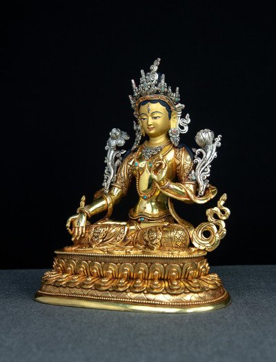 White Tara- Double lotus- 9 inch 24k Full-gold antique